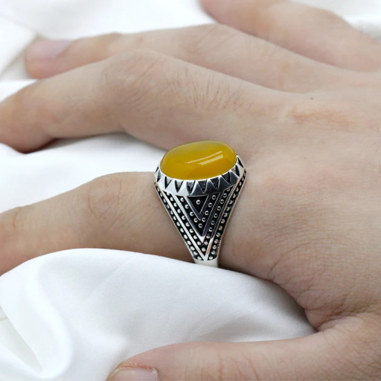 Anillo de piedra Natural para hombre, de Plata de Ley 925 con ágata grande, de plata tailandesa, Estilo Vintage, joyería turca hecha a mano