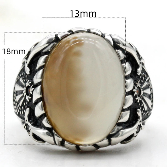 Anillo de plata de ley s925 con piedra Natural, estilo Punk turco, moda Retro, anillos de boda clásicos para hombres y mujeres