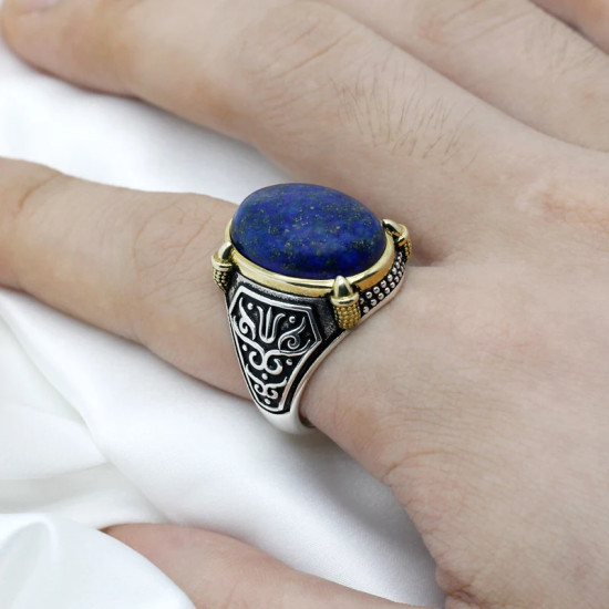 Anillos de plata 925 auténtica para hombre, joyería de boda a la moda, piedra lapislázuli Natural azul