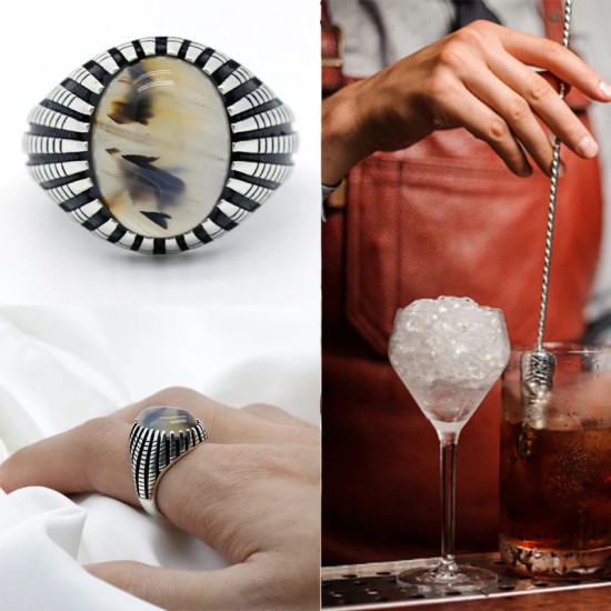 Anillos de plata de ley 925 para hombre, piedra de ágata Natural, anillo de estilo Punk Retro para hombre, joyería de fiesta, joyería fina hecha a mano